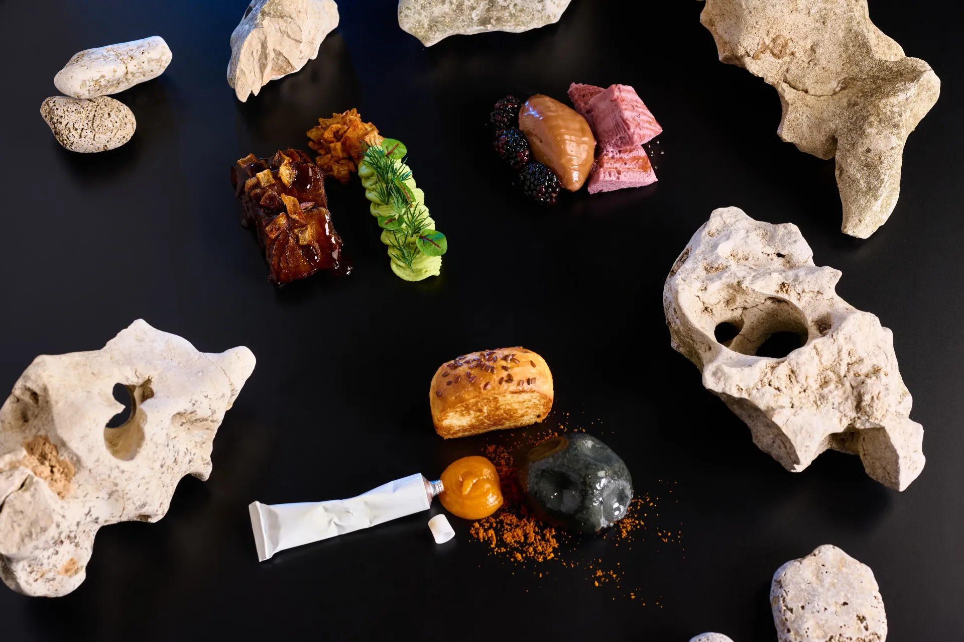 • Паштет из утки с гелем из вяленого абрикоса и "космическим" хлебом.
